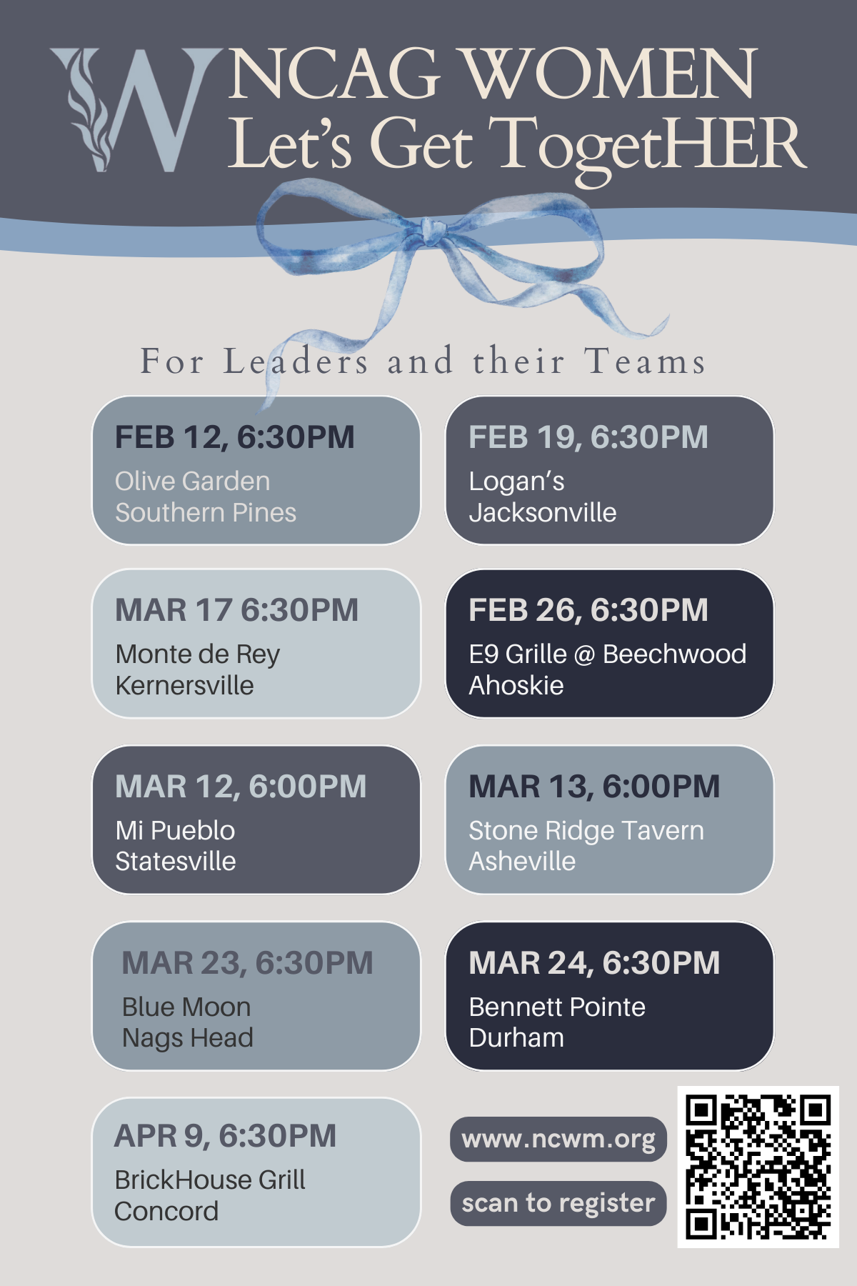 North Carolina is big, but our vision for women’s ministry is even bigger! We’re bringing NCAG Women’s regional gatherings to you. Whether you’re a seasoned leader or just stepping into your ministry team role, there’s a seat at the table with your name on it. No formal agendas or long speeches—just real conversations over a meal. Come prepared to share what’s working, hear what others are dreaming up, and take back a notebook full of inspiration for your local church.